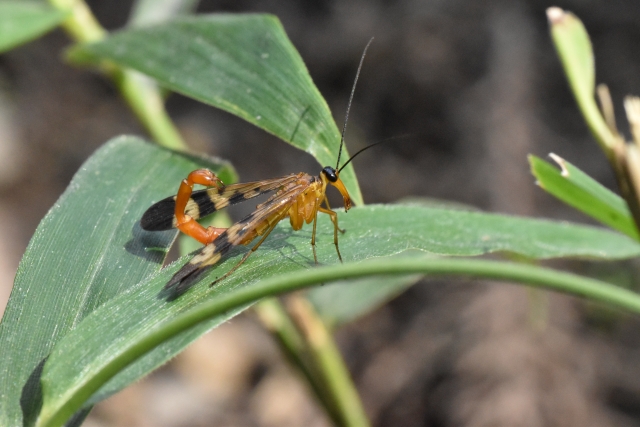 オスがサソリのような姿をしていることから海外ではスコーピオンフライと呼ばれますが、メスの腹は真っ直ぐです。